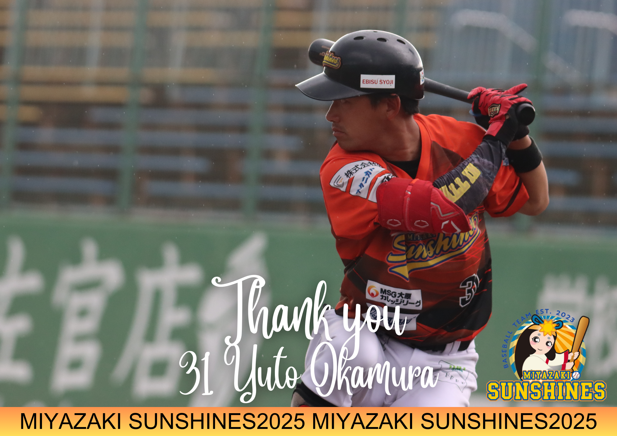 宮崎サンシャインズでプレーした経験を活かして、海外のステージで活躍できるように頑張ります!