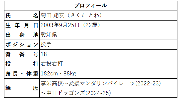 元中日ドラゴンズ・菊田翔友選手入団のお知らせ